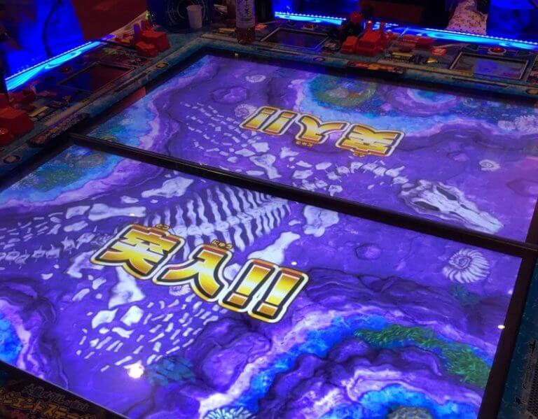 釣りスピリッツは、大きな画面を囲むようにプレーヤー席があります。