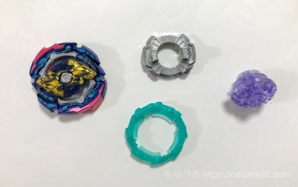 ベイブレードバーストGTになってから、ディスクはフレーム一体型が続いていたので、DTベイでは基本フレーム一体型となるのかなぁと思いましたが、今回はフレームとディスクが分かれました。
