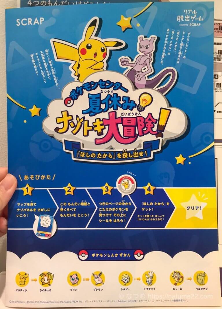 「ポケモンセンター夏休みナゾトキ大冒険」 は子供(小学生低学年頃まで)におすすめ 子供の謎解き初チャレンジにちょうどいい