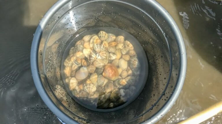 アサリの砂を効率的に出させるには、現地の海水が効果的とのことですが、バケツに水海水を入れてその中にアサリを入れて持ち帰る方法は推奨されていないです。